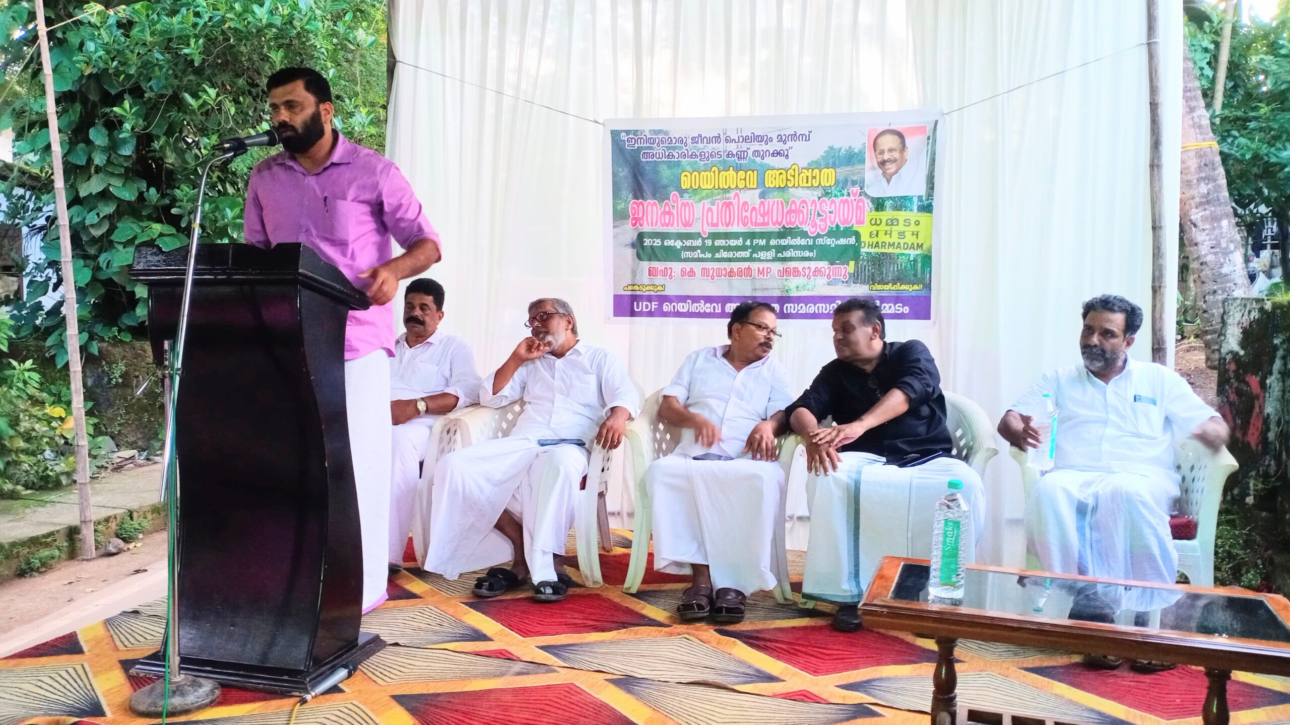 ധർമടം: റെയിൽവേ സ്റ്റേഷൻ അടിപ്പാത വേണം ആവശ്യപ്പെട്ടു കൊണ്ടു. ധർമടം യു.ഡി.എഫിന്റെ നേതൃത്വത്തിലുള്ള ജനകീയ സമരസമിതിയുടെ പ്രതിഷേധ കൂട്ടായ്മ സമരസമിതി കൺ വിനർ കുന്നുമ്മൽ ചന്ദ്രന്റെ അദ്ധ്യക്ഷതയിൽ കെ.പി.സി.സി. മെമ്പർ റിജിൽ മാക്കുറ്റി ഉൾ ഘാടനം ചെയ്തു ധർമടം നിയോജക മണ്ഡലം മുസ്ലിം ലീഗ് ജനറൽ സിക്രട്ടറി. സക്കീർ മൗവ്വഞ്ചേരി . ധർമടം ഗ്രാമ പഞ്ചായത്ത് മെമ്പർ എം.കെ.മജീദ്. പി.ടി. സനൽകുമാർ. അലി. വി. നാരായണൻ തുടങ്ങിയവർ സംസാരിച്ചു.