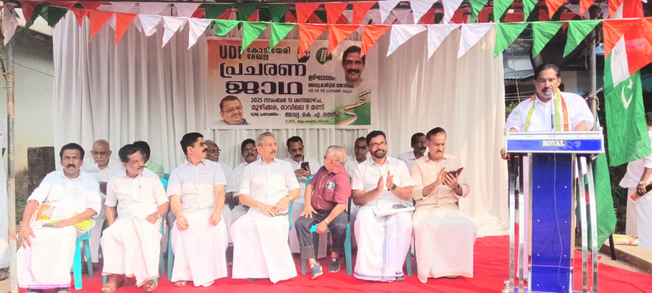 തലശ്ശേരി യു. ഡി. എഫ് കോടിയേരി മേഖല വാഹന പ്രചരണ ജാഥ മൂഴിക്കരയില്‍ ഡി. സി. സി പ്രസിഡണ്ട് അഡ്വ. മാര്‍ട്ടിന്‍ ജോര്‍ജ്ജ് ഉദ്ഘാടനം ചെയ്തു. ജാഥലീഡര്‍മാരായ കെ. ഖാലിദ് മാസ്റ്റര്‍, സി. പി. പ്രസില്‍ബാബു എന്നിവര്‍ക്ക് ഡി. സി. സി പ്രസിഡണ്ട് പതാക കൈമാറി. ചടങ്ങില്‍ പി. ദിനേശന്‍ അധ്യക്ഷത വഹിച്ചു. മുസ്ലീം ലീഗ് ജില്ല വൈസ് പ്രസിഡണ്ട് അഡ്വ. കെ. എ ലത്തീഫ് മുഖ്യപ്രഭാഷണം നടത്തി. വി. രാധാകൃഷ്ണന്‍ മാസ്റ്റര്‍, അഡ്വ. സി. ടി സജിത്ത്, കെ. ശശിധരന്‍ മാസ്റ്റര്‍, വി. സി പ്രസാദ്, ടി. എച്ച് നാരായണന്‍,സാഹിര്‍ പാലക്കല്‍, ബഷീര്‍ ചെറിയാണ്ടി, റഷീദ് തലായ്, സി. കെ. പി മമ്മു, കുഞ്ഞി മൂസ, ടി. എം പവിത്രന്‍, പി. കെ രാജേന്ദ്രന്‍ എന്നിവര്‍ സംസാരിച്ചു. കെ. പി സിദ്ധീഖ് സ്വാഗതം പറഞ്ഞു.